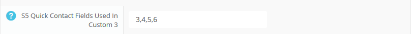 3. In the template configuration you need to define which fields from the S5 Quick Contact module that you would like to show in the controller area. Enter the number of the fields you would like to show separated by commas. For example if I want to show the second, fifth and seventh fields, I would enter 2,5,7 in this field.